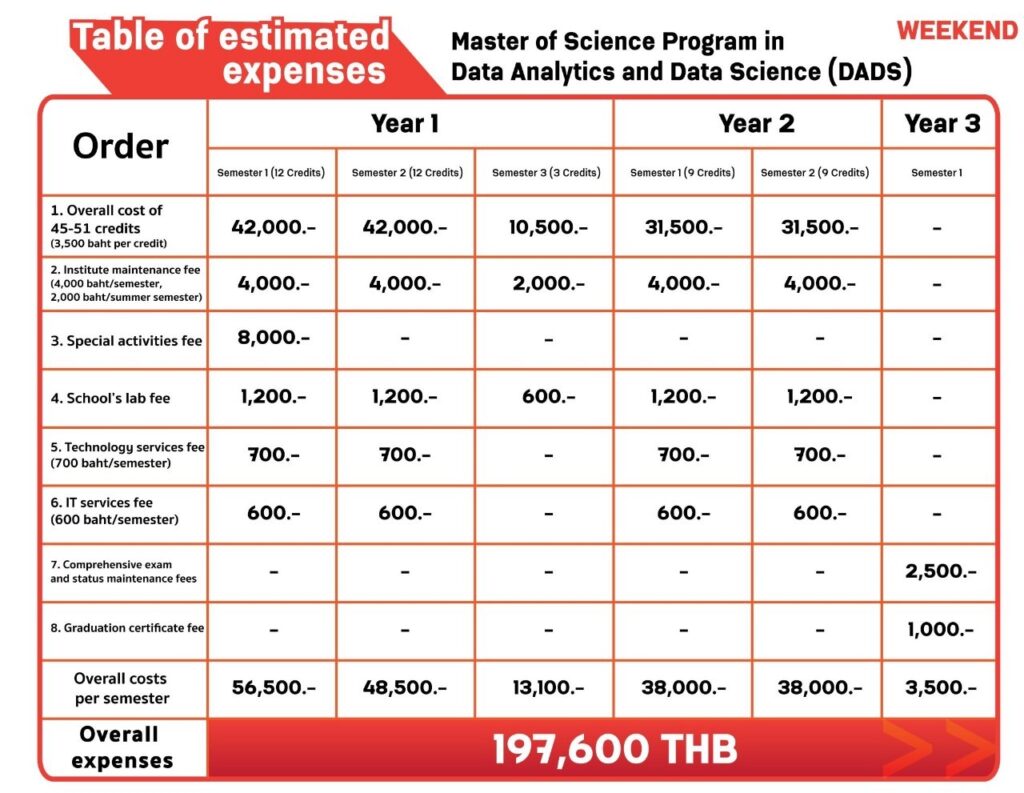 The Master of Science Program in Data Analytics and Data Science (Revised Program B.E. 2564) has been revised from the Master of Science in Business Analysis and Data Science (Revised Program B.E. 2563). This has resulted from the rapid changes and difficult predications in politics, economy, society, disasters and illnesses in the era that information technology is widely used. This leads to a creation of massive data, which is crucial to learning, understanding, analyzing and managing of the data in the most systematic and useful manner. Additionally, this is to strengthen the field of data analysis and data science, which is the identity of the Institute to be better in line with the notion of King Rama IX who established the Institute and particularly the Graduate School of Applied Statistics. In his vision, national development would require data and scientific knowledge. Thus, the objective of this program is to produce personnel for the country in response to the royal initiative on establishing the National Institute of Development Administration.