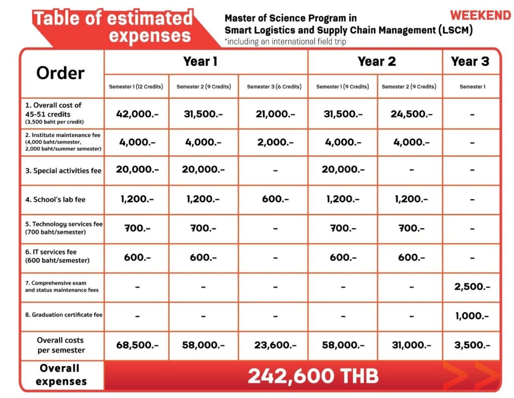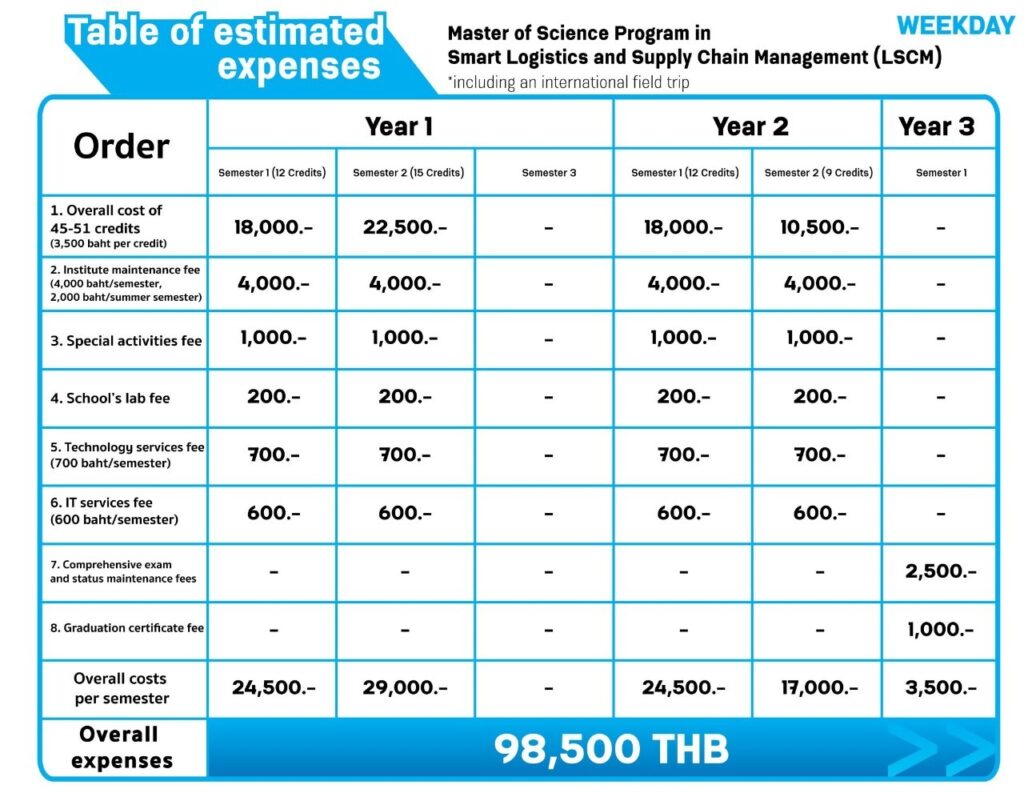 Students with a degree in logistics must enroll in not less than 37 credits by choosing one of the plans: Plan A (thesis) or Plan B (non-thesis). The duration of the program is 2 years and not exceeding 5 academic years. The program is offered as a regular program during official hours (Monday-Friday) as well as a special program outside of official hours (Saturday-Sunday).