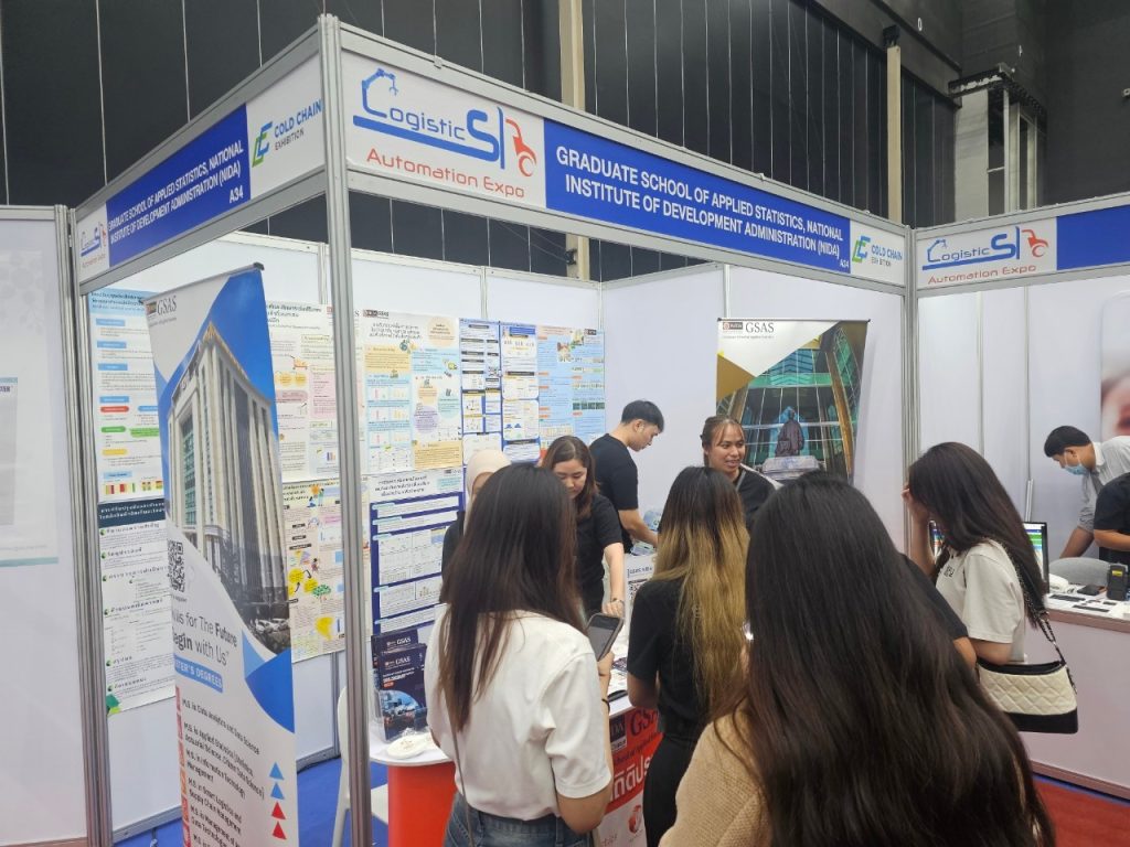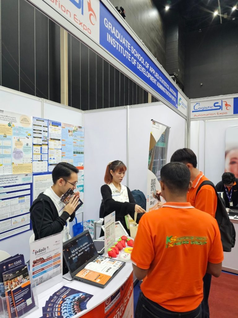 วันที่ 10-12 กรกฎาคม 2567 คณะสถิติประยุกต์ สถาบันบัณฑิตพัฒนบริหารศาตร์ ิออกบูธในงาน Logistics Automation Expo 2024 “ฮับของคนโลจิสติกส์และแวร์เฮาส์” Logistics Automation Expo ณ ไบเทคบางนา Hall EH100 บูธที่ A34