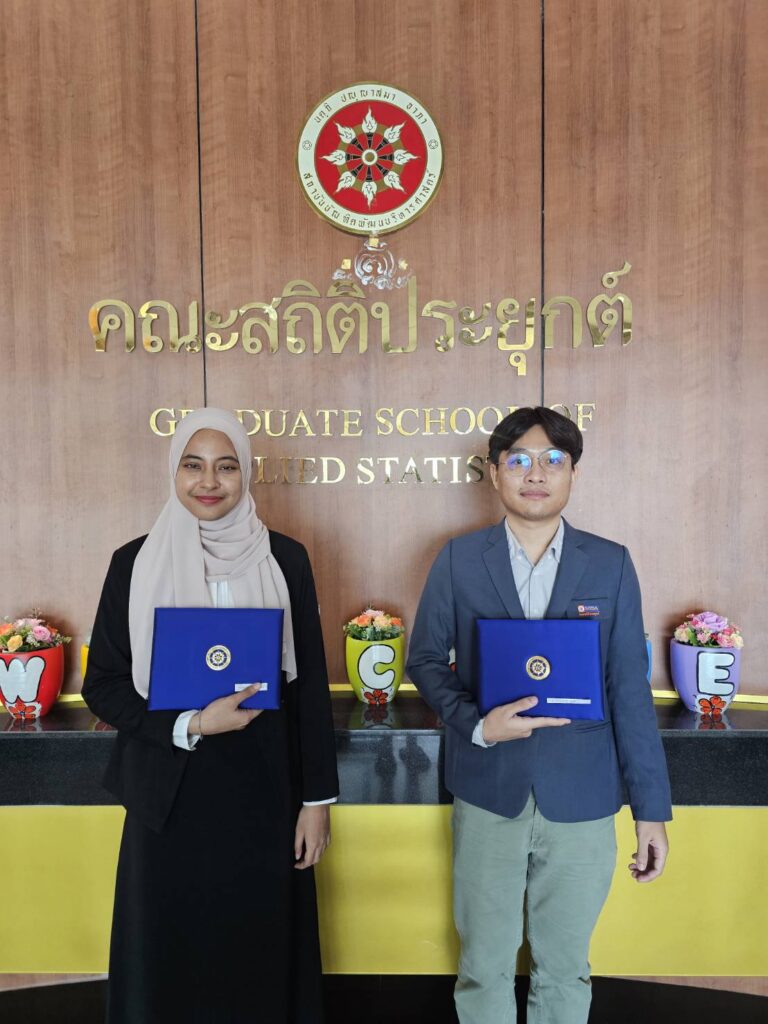 ตัวแทนนักศึกษาผู้ได้เกียรติบัตร จากหลักสูตรวิทยาศาสตรมหาบัณฑิต สาขาวิชาการวิเคราะห์ข้อมูลและวิทยาการข้อมูล เข้าร่วมจำนวน 2 คน ได้แก่
