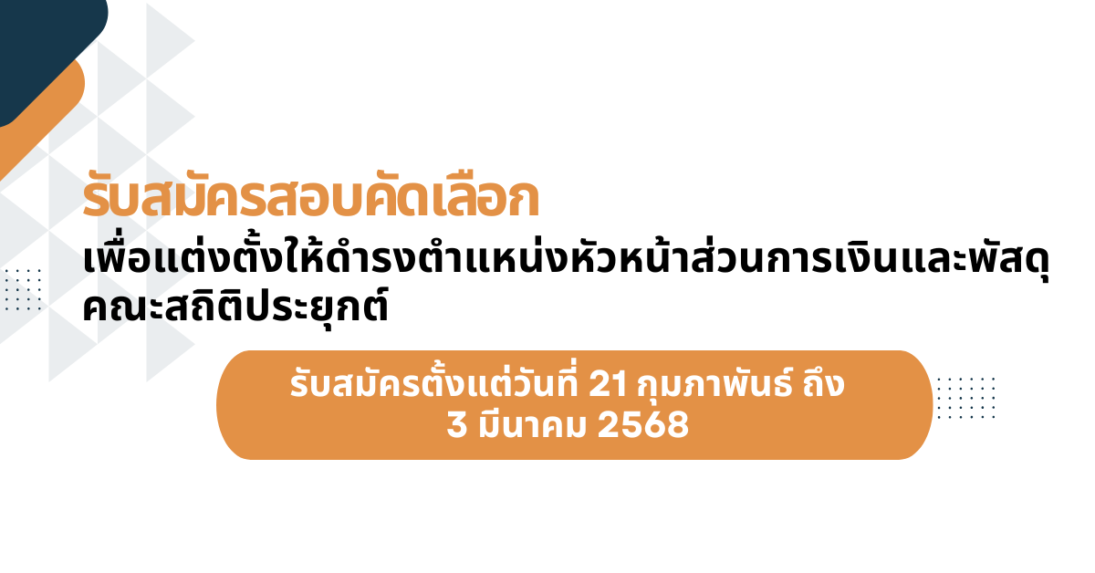 รับสมัครสอบคัดเลือกบุคลากร ตำแหน่งหัวหน้ากลุ่มงานบริหารและธุรการ คณะสถิติประยุกต์