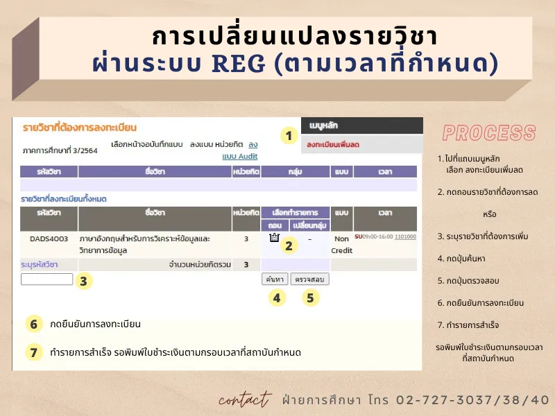 หากมีปัญหาหรือข้อสงสัยเกี่ยวกับตารางสอน ติดต่อ Line OA: https://lin.ee/gZLdAh3 หรือโทร 02-727-3039