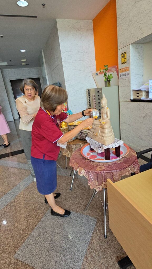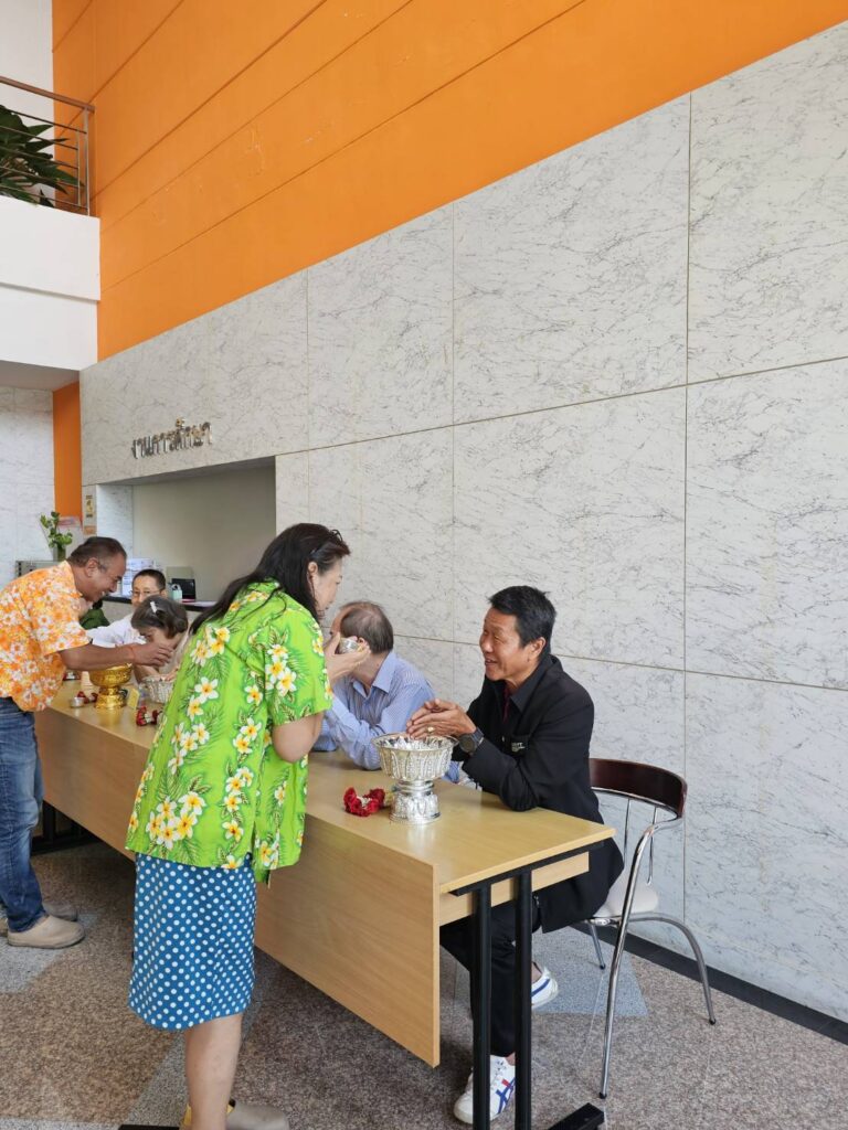 ทั้งนี้ อาจารย์ผู้ใหญ่ได้ให้พรแก่อาจารย์และเจ้าหน้าที่ทุกคน เพื่อเป็นขวัญกำลังใจในการปฎิบัติงานและเป็นสิริมงคลต้อนรับปีใหม่ไทยอีกด้วย
