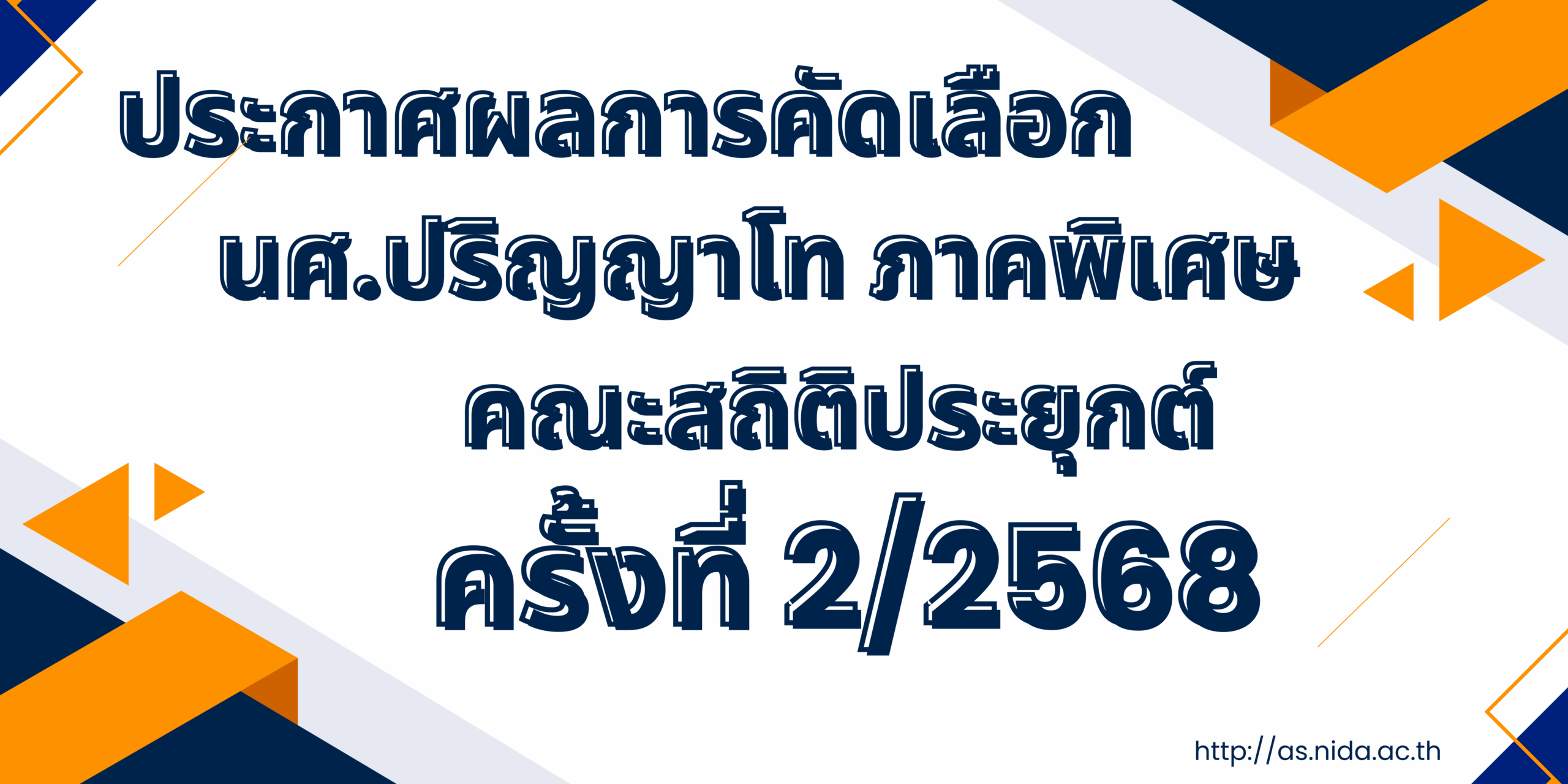 ผลการพิจารณาคัดเลือกนักศึกษาระดับปริญญาโท ภาคพิเศษ ครั้งที่ 2/2568 (ประจำภาคการศึกษาที่ 1/2568)