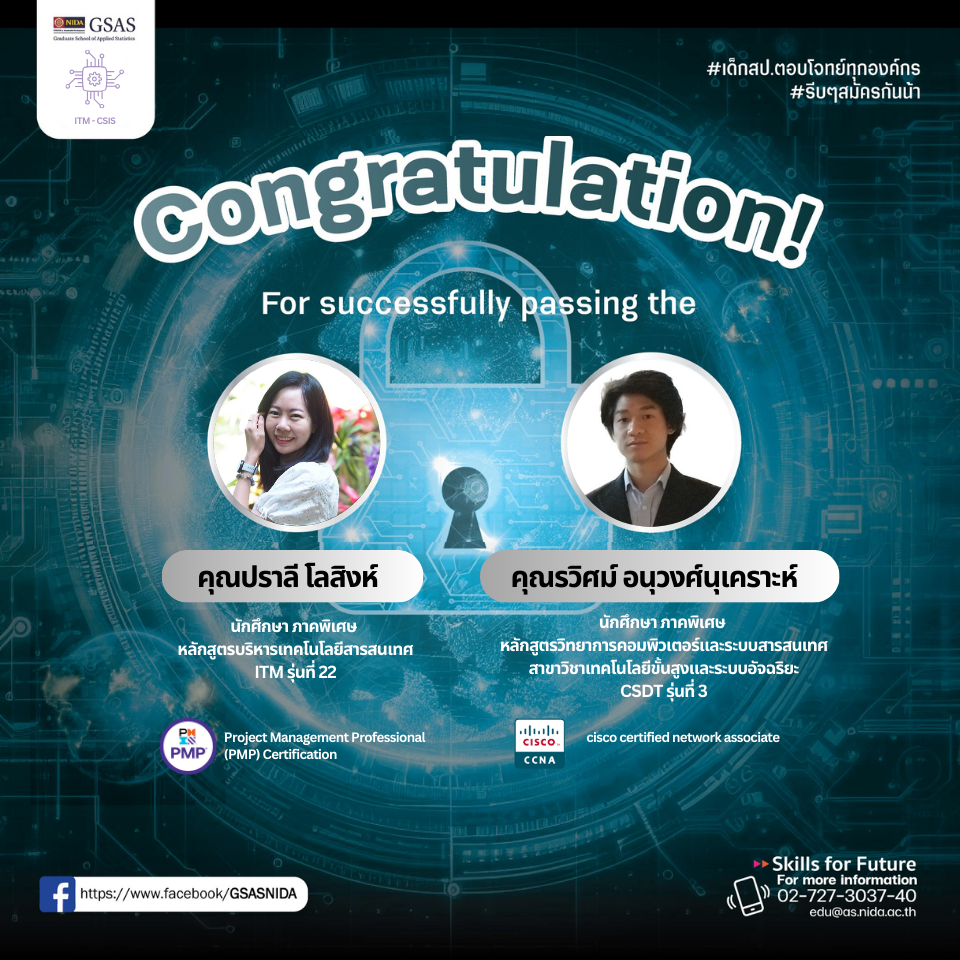 ขอแสดงความยินดีกับนักศึกษาหลักสูตร ITM และ CSIS เนื่องในโอกาสผ่าน Certificate ระดับ Global โดยใช้ความรู้ที่ได้จากหลักสูตรฯ