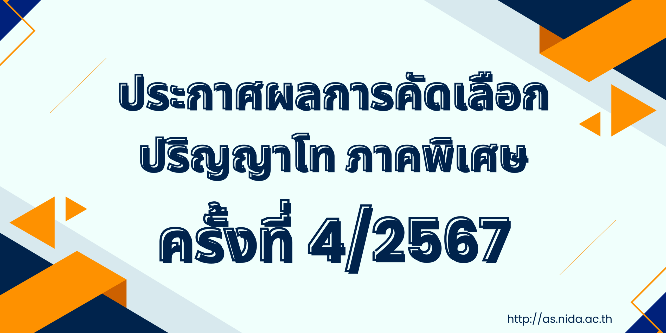 ประกาศผลการพิจารณาคัดเลือกเข้าเป็นนักศึกษาระดับปริญญาโท ภาคพิเศษ ครั้งที่ 4/2567