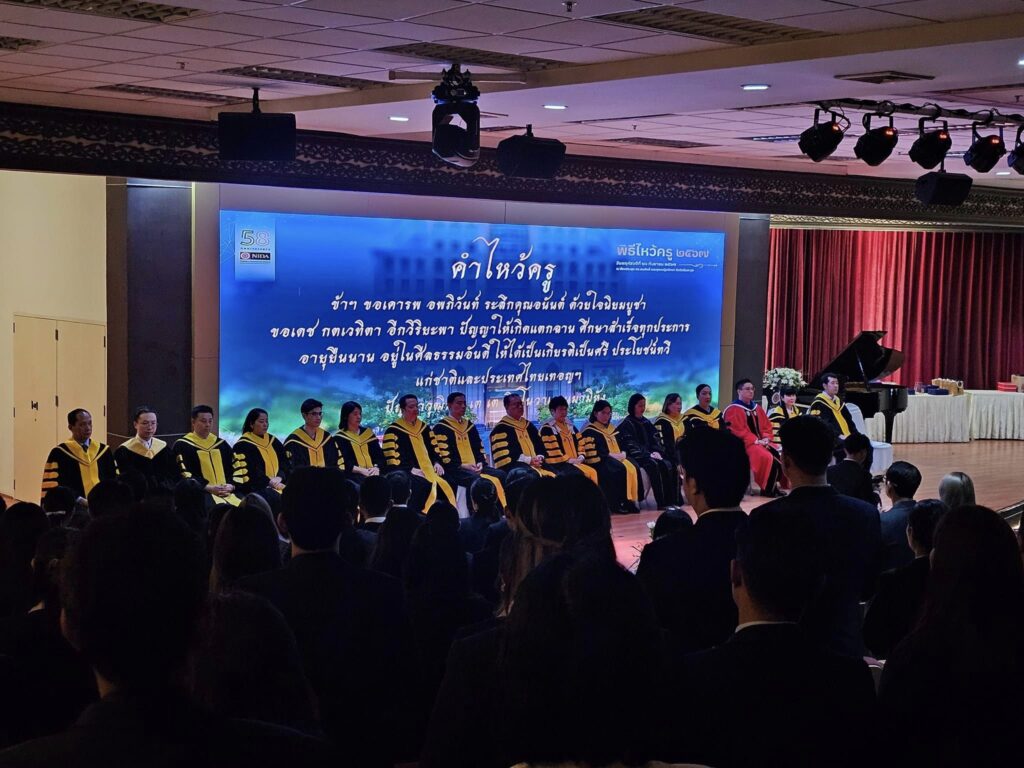 วันพฤหัสบดีที่ 26 กันยายน 2567 สถาบันได้จัดพิธีไหว้ครู ประจำปีการศึกษา 2567 ณ ห้องประชุม ดร.สมศักดิ์และคุณหญิงปัทมา ลีสวัสดิ์ตระกูล